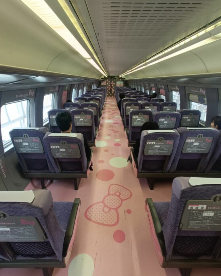 Le train Kodama Hello Kitty se trouve sur la portion Osaka – Fukuoka. Plusieurs trains de ce type circulent chaque jour. Je vous conseille de réserver en amont ce Shinkansen car en saison, le train Hello Kitty est très prisé. Au guichet Japan Rail Pass (voir plus bas), il vous suffit de demander « Hello Kitty train », les employés le connaissent tous. Voici tous les horaires pour organiser votre trajet : https://www.jrailpass.com/blog/hello-kitty-shinkanse. Attention, ils changent régulièrement.